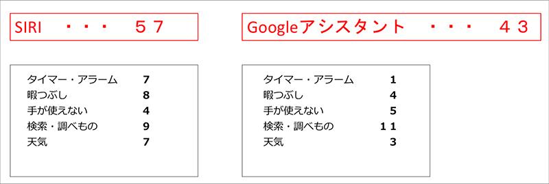 Siri、Googleアシスタント別に結果を見て見ましょう。
