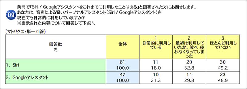 - 利用率こそSiriの方が高かったが、日常的に利用している割合と定着度はGoogleアシスタントの方が高かった