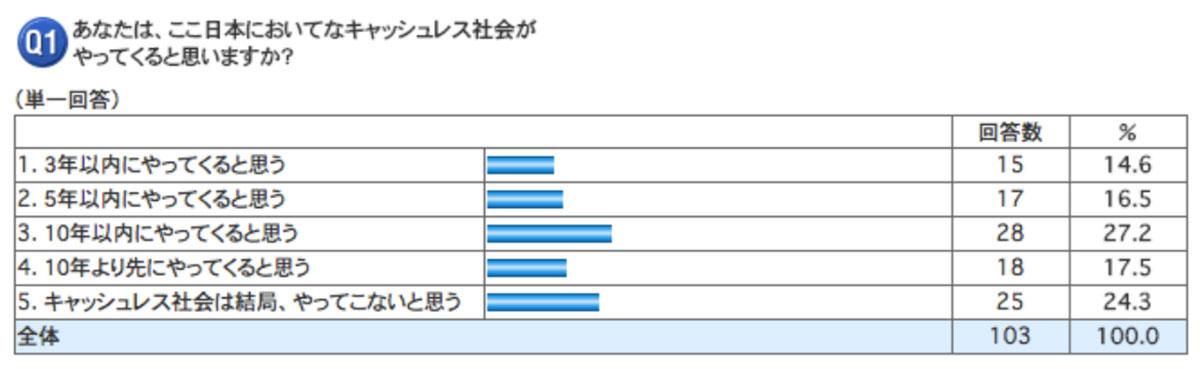 - キャッシレス社会がやってくると75%以上が予想している。