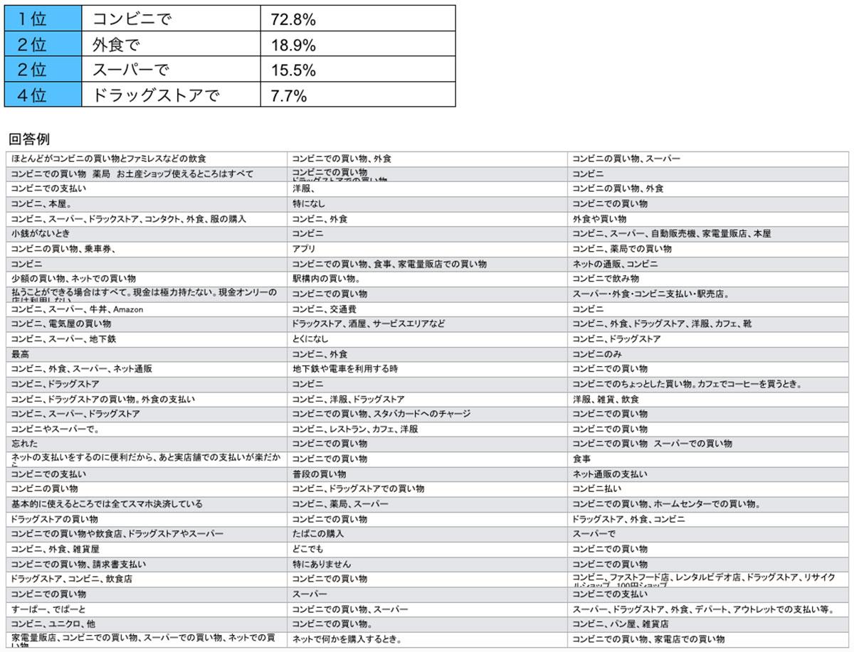 (例:コンビニでの買い物、外食、スーパー、美容院、映画、洋服 など)