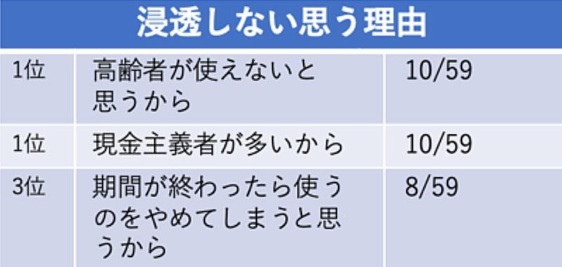 - 浸透する理由としては、ポイント還元の"お得感"が一番多かった。「浸透しない/わかない」理由としては「高齢者が使えない」、「現金主義が多い」がどちらも上位を占めた。しかし、実際には9割以上がキャッシュレスで支払いをし、現金主義派はキャッシュレス派の1/3しかいないことがわかった。消費者が抱く"日本は現金王国、という思い込み"や"キャッシュレスへのハードル"をなくし、真のキャッシュレス大国になるためには、事業者側のインフラ整備や手数料問題の解決が必要不可欠である。