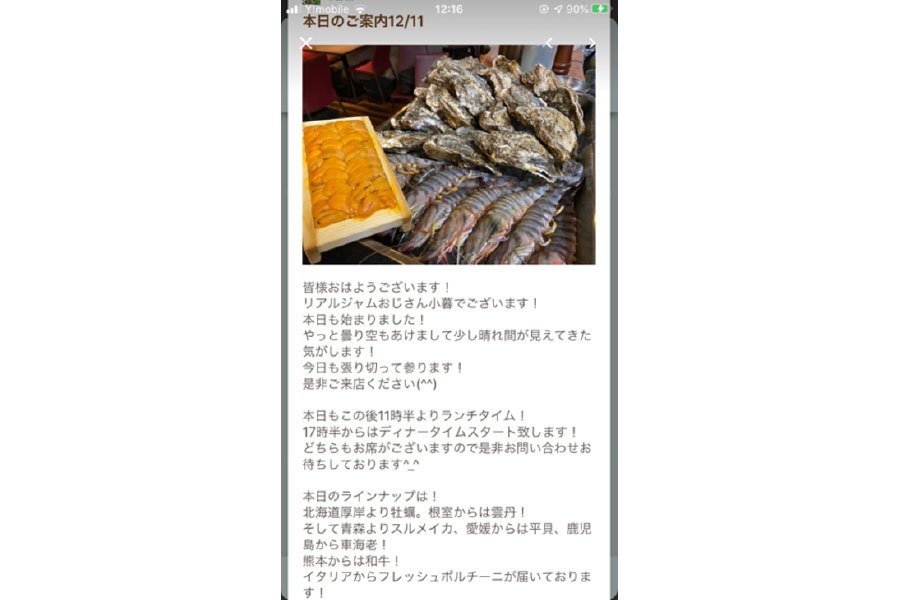 イタリアンレストラン「COGS DINING KAGURAZAKA」では「毎朝10時にZeetleの会員さんに向けて、ランチやディナーのメニューを配信してます。メッセージを見たお客さんから電話をもらい、夜のコースをランチに作ってくれないかとリクエストされることも。コロナ前と比べ、お客様とコミュニケーションの質が上がり、実は売上も伸びているんです」とオーナー兼シェフの小暮さんは語ってくれました。
